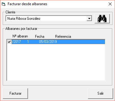 Seleccionamos los albaranes del cliente seleccionado, solo aparecen los pendientes de facturar: