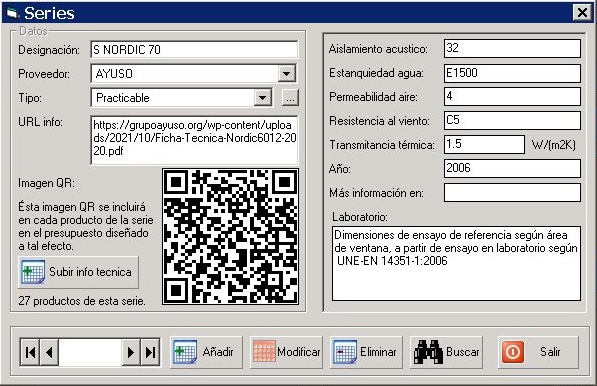 AYUDA MetalSoftPodemos crear la etiqueta energética de cada una de las carpinterías que calculemos en los presupuesto. Para ello tendremos que haber rellenado previamente los datos tecnicos de las carpinterias, vidrio, doble acristalamiento, persianas, etc. Estos datos debe suministrarlos el fabricante o proveedor. Para las carpinterías se rellena en los propios datos de la serie: