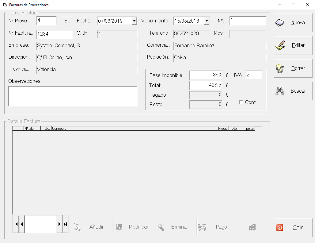 El programa importará tanto las facturas de los proveedores y registrará los proveedores en su correspondinete ficha.