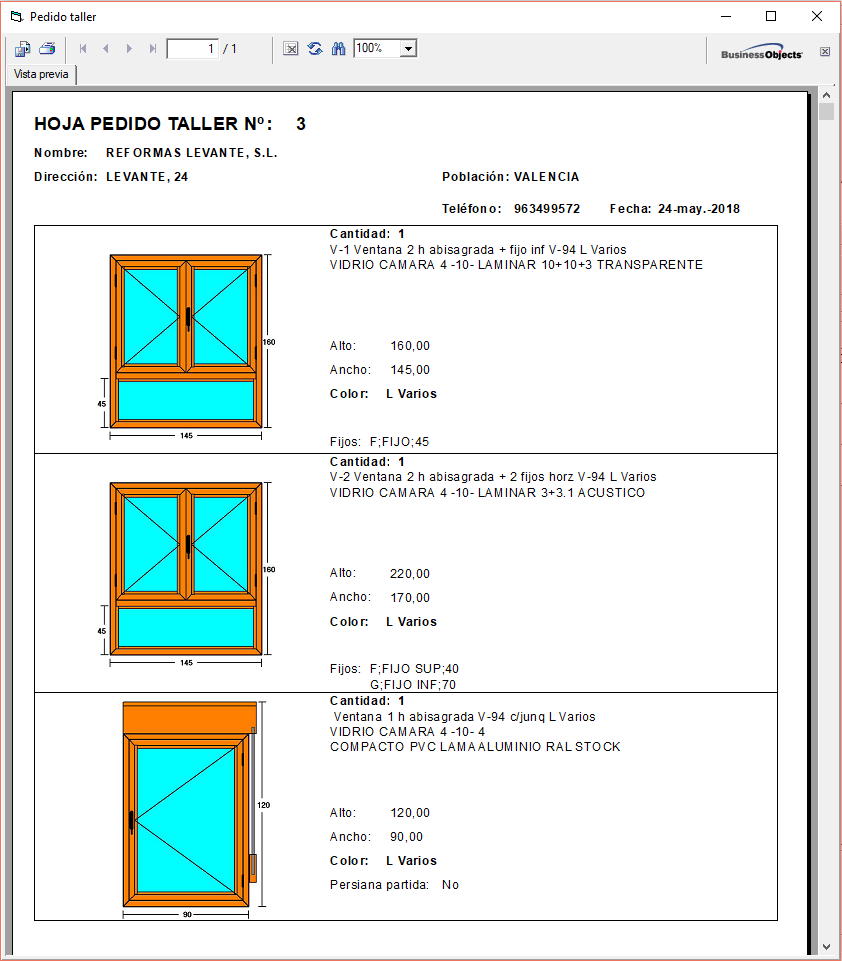 AYUDA MetalSoftCon esta Hoja podemos ver, imprimir o exportar a PDF, etc una hoja con los datos necesarios para fabricar el presupuesto pero sin los cortes de los materiales. Esta hoja suele usarse cuando en el taller fabrican los productos sin necesidad de la hoja de corte detallada.