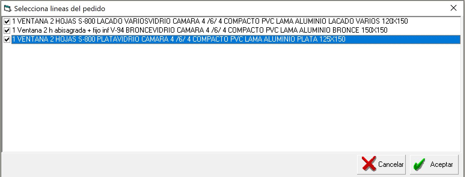 Para luego mostrar la hoja de pedido con las lineas seleccionadas.