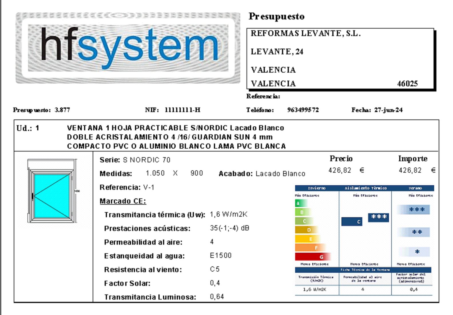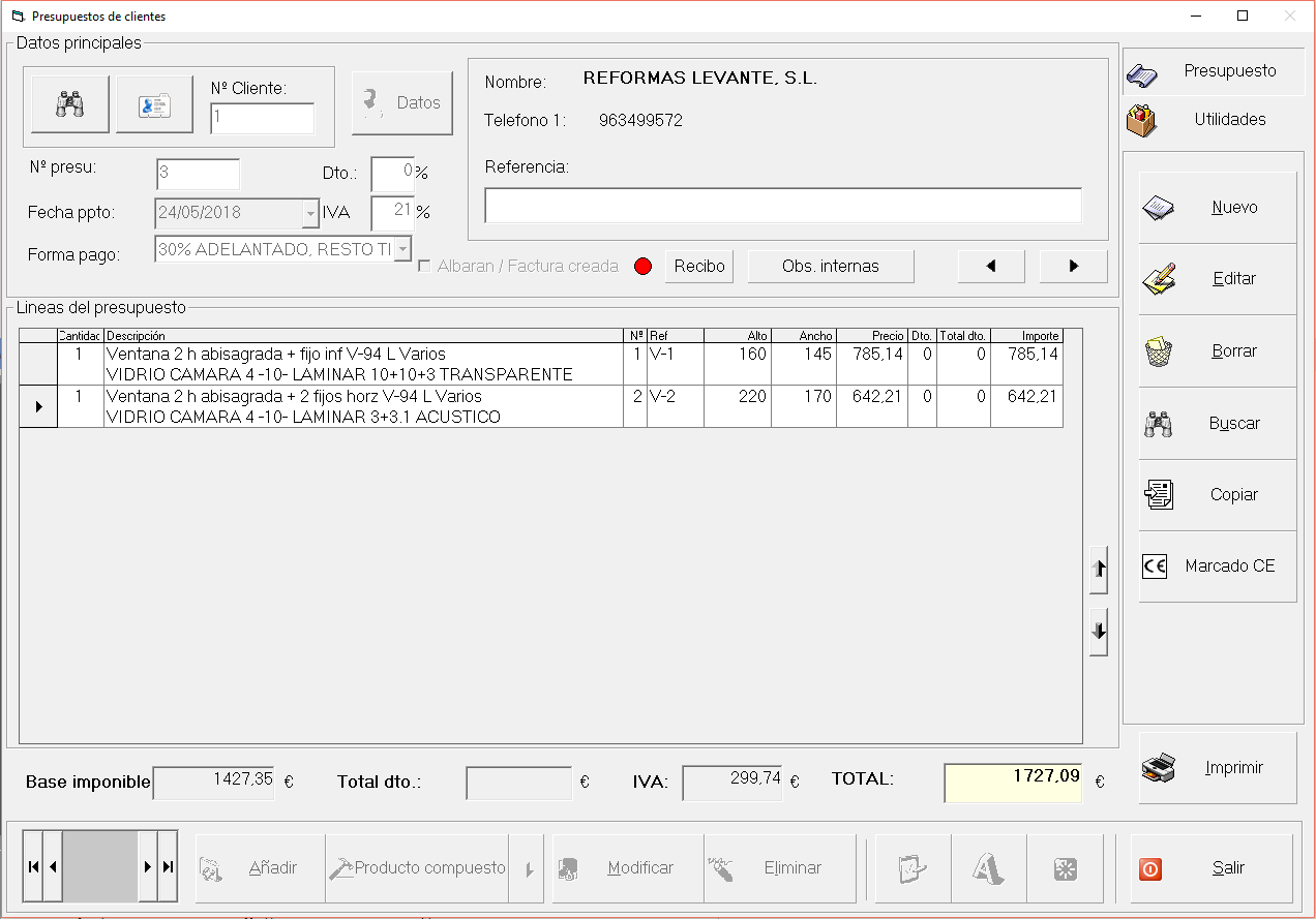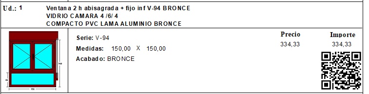 Presupuesto Tipo 2: El presupuesto se mostrará desglsando Carpintería, Cristal y persiana.