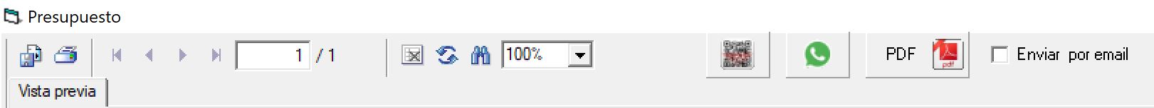 Vista previa: Se mostrará la vista previa de la impresión del presupuesto pudiendo exportarse a PDF o imprimirse directamente en papel.