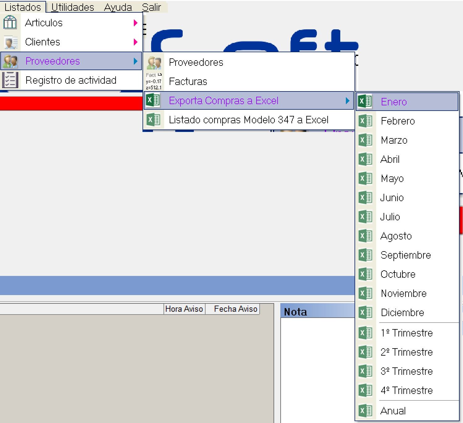 Proveedores > Exporta Compras a Excel.