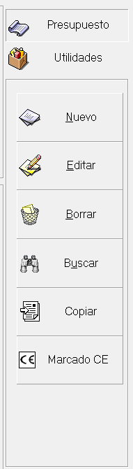 Los botones que afectan a los presupuestos están en el recuadro de la derecha. Este recuadro tiene dos modos de posición, modo Presupuesto en el que se puede: