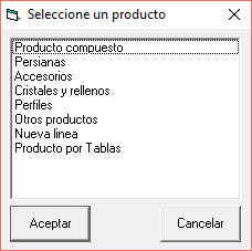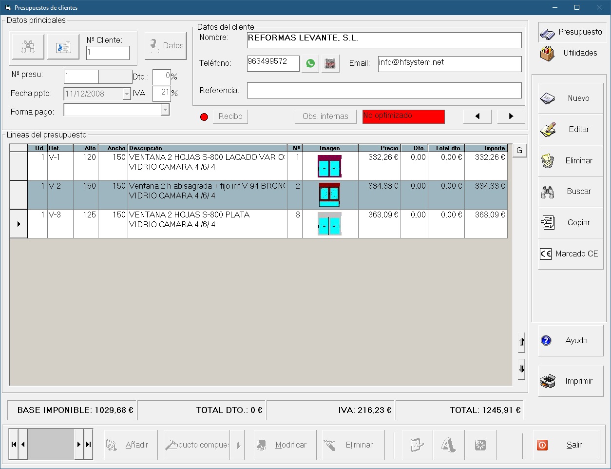 pantalla de presupuestos calcularemos cualquier producto de los que tenemos