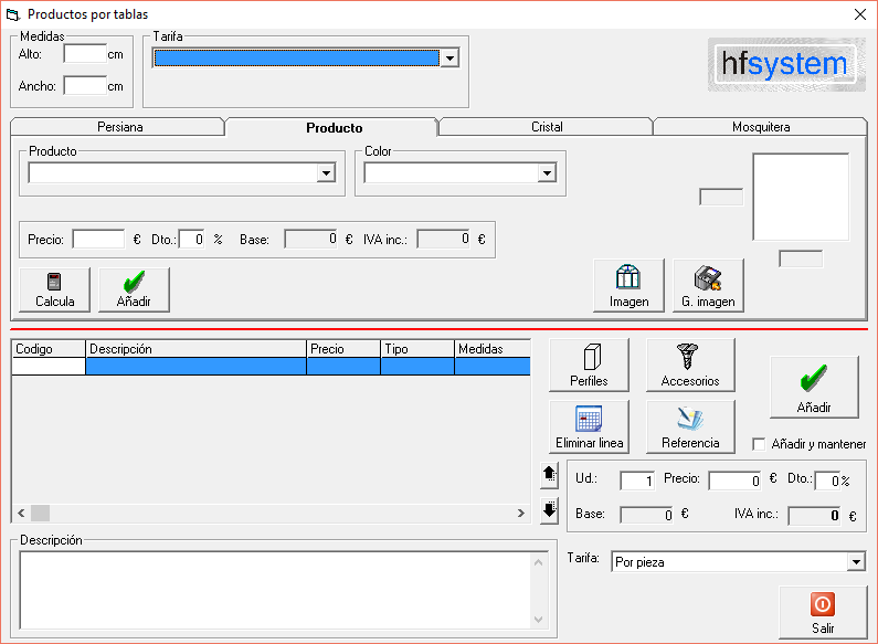 AYUDA MetalSoftProducto donde el precio está en archivos de Excel en cuadrantes de precios con altos, anchos y sus respectivos precios.