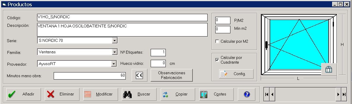 Calcular por Cuadrante : Esta modudo esta pensando para calcular el precio de productos de carpintería que no fabricamos, y que un proveedor de carpinteria nos facilita los precios de dicha carpinteria.